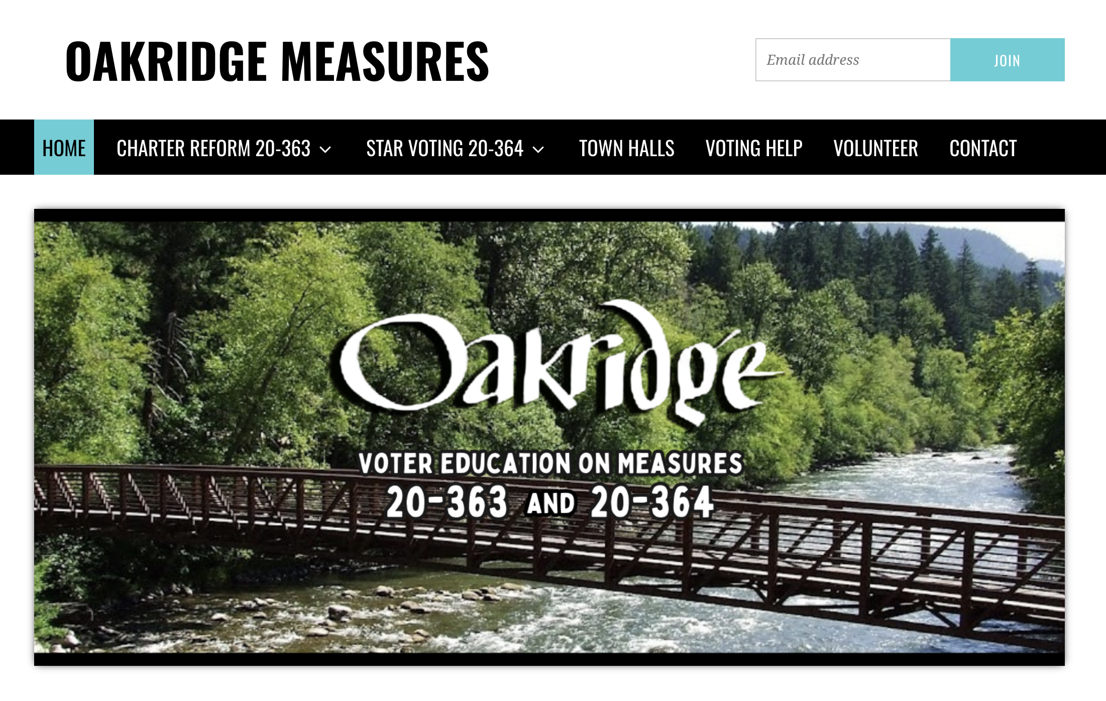 STAR Voting for Oakridge Pilot 2024Oakridge City Council and the Charter Reform Commission referred a ballot measure to the voters to adopt STAR Voting as a pilot project for mayor and city council elections. STAR Voting for Oakridge Measure 20-364 wouldn't cost anything for the city and voters would get to try STAR Voting for three election cycles before voting to adopt it permanently. Oakridge city elections are already nonpartisan and are conducted through a single election in November, This would not change. |